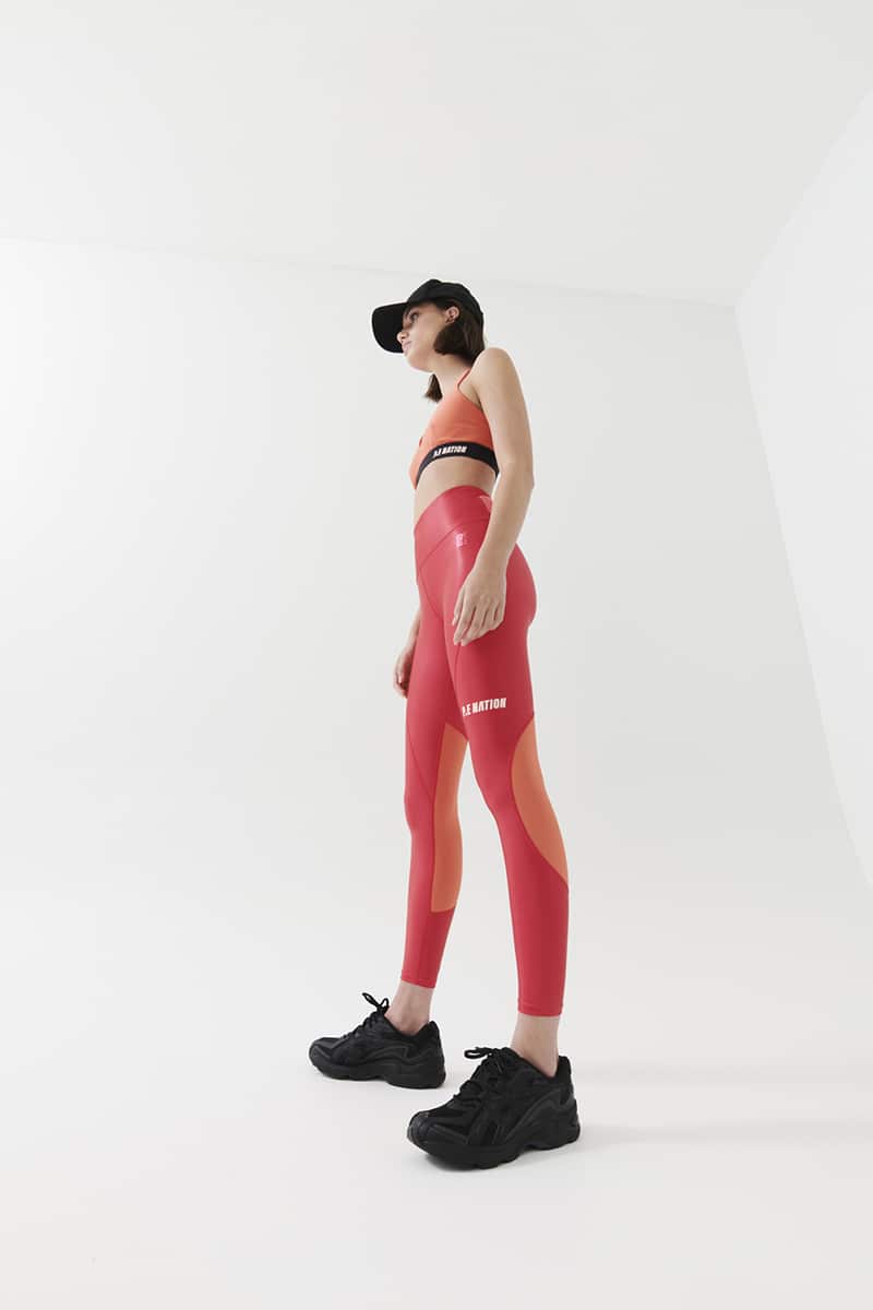 The Phoenix Legging in Knockout Pink comes as part of our It’s All In Me Collection. A high-rise, full length active style cut from a shiny statement performance fabrication, the Phoenix Legging is in knockout pink with curved soft orange panelling at the back for true P.E aesthetic. Built in waistband support adds a compressive feel and holds the leg in place as you move through the day. Contrast P.E Nation logos at the hip and above the knee match back with a woven jacquard P.E Nation fluro waistband element and the heat press P.E Nation logo badge at back ankle. We like to wear it back with the One Shot Tee, Overtake Tank, High Press Sports Bra and Flyaway Hoodie.