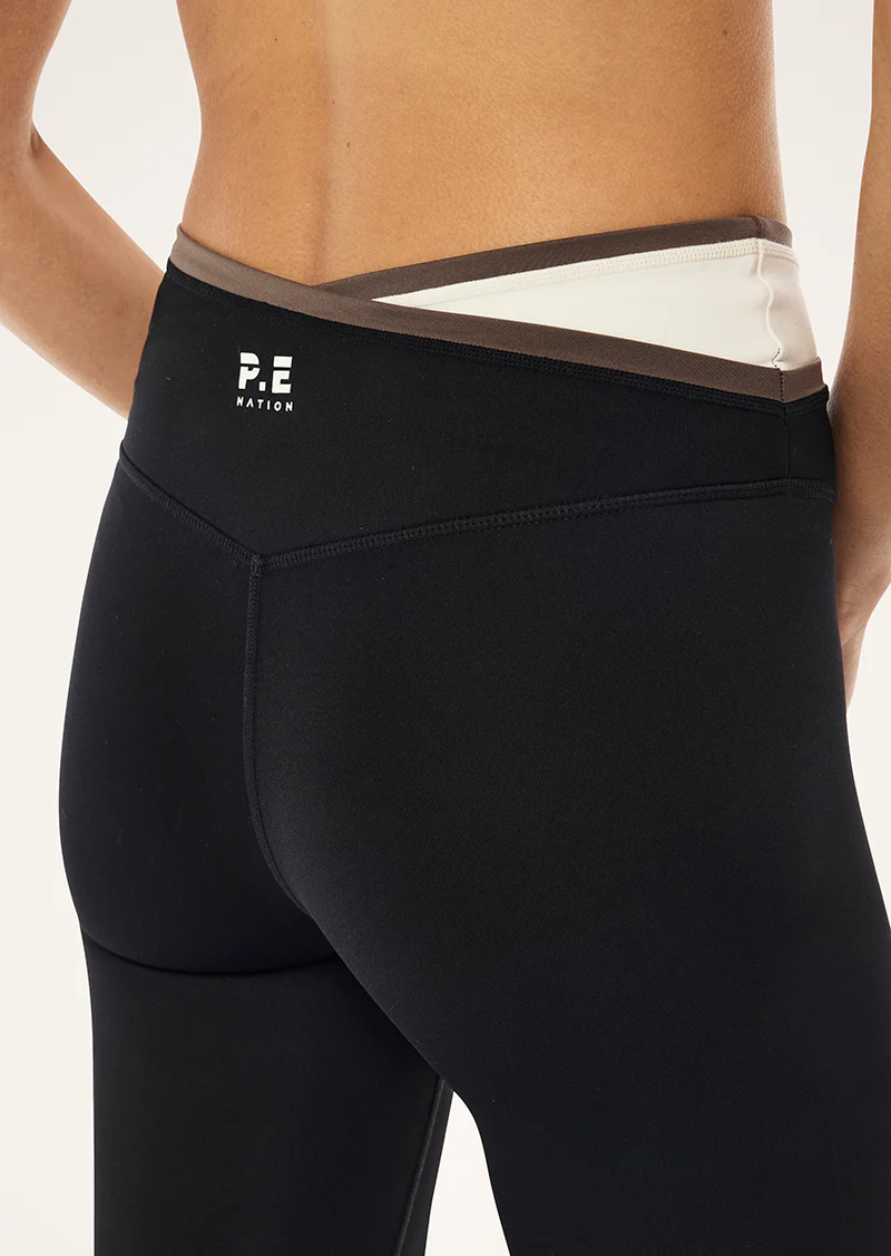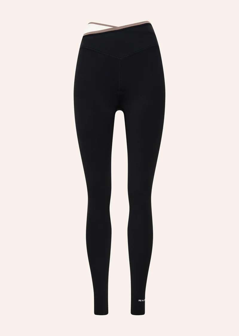 The Status Full Length Legging in Black & Walnut is made from our Studio Soft fabrication, a lightly peached fabric with a matte finish. This high rise full length legging features a contrast cross over detail at the waistband and is best styled with the matching Signature Sports Bra.