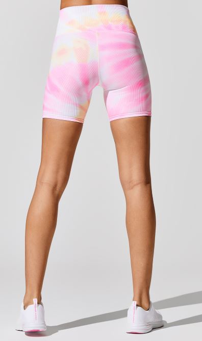 Offered in a dreamy pink and orange tie-dye color scheme, the Ribbed Bike Short from Beach Riot features a slightly shorter length with a wide double-layered waistband for a sculpted and stable core. This versatile pair is made from Beach Riot’s signature soft and smooth ribbed performance fabric.