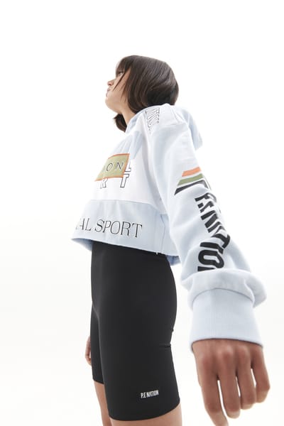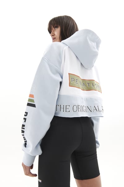 The Cruiser Hoodie in Ballad Blue comes as part of our Ready, Set, Let’s Go Collection, designed to inspire sky high energy, the pursuit of all passions, an appreciation for the power of now and the endless possibilities hidden within present time. A regular fit hoodie with a cropped length and raw edge hem, the Cruiser is a true lounge / street layer to add over workout wear before and after training sessions. All over P.E logomania at centre front, back and sleeves stays true to the P.E Nation original design aesthetic. Cut from midweight organic cotton brushed fleece, team it with all your favourite fits, including the Visualise Legging, Reaction Legging, Progression Bike Short and Visualise Bike Short from the collection.