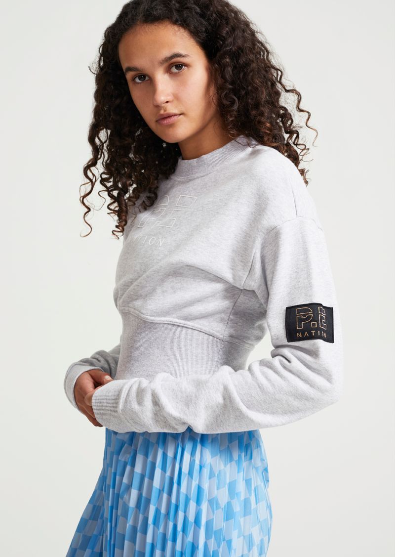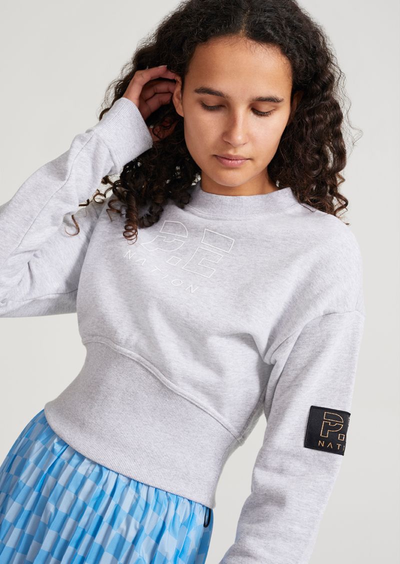 Your favourite cult classic P.E Nation sweat just got a revamp with the Sprint Shot Sweat. A new cropped and ribbed version of our favourite Heads Up Sweat in a mid-weight organic cotton french terry fabrication. In a neat fit featuring a cropped hem with elasticated ribbing. Featuring a P.E Nation raised rubber logo print on the front chest and P.E Nation recycled logo patch on the sleeve. Pair it back with your favourite mid-rise leggings.