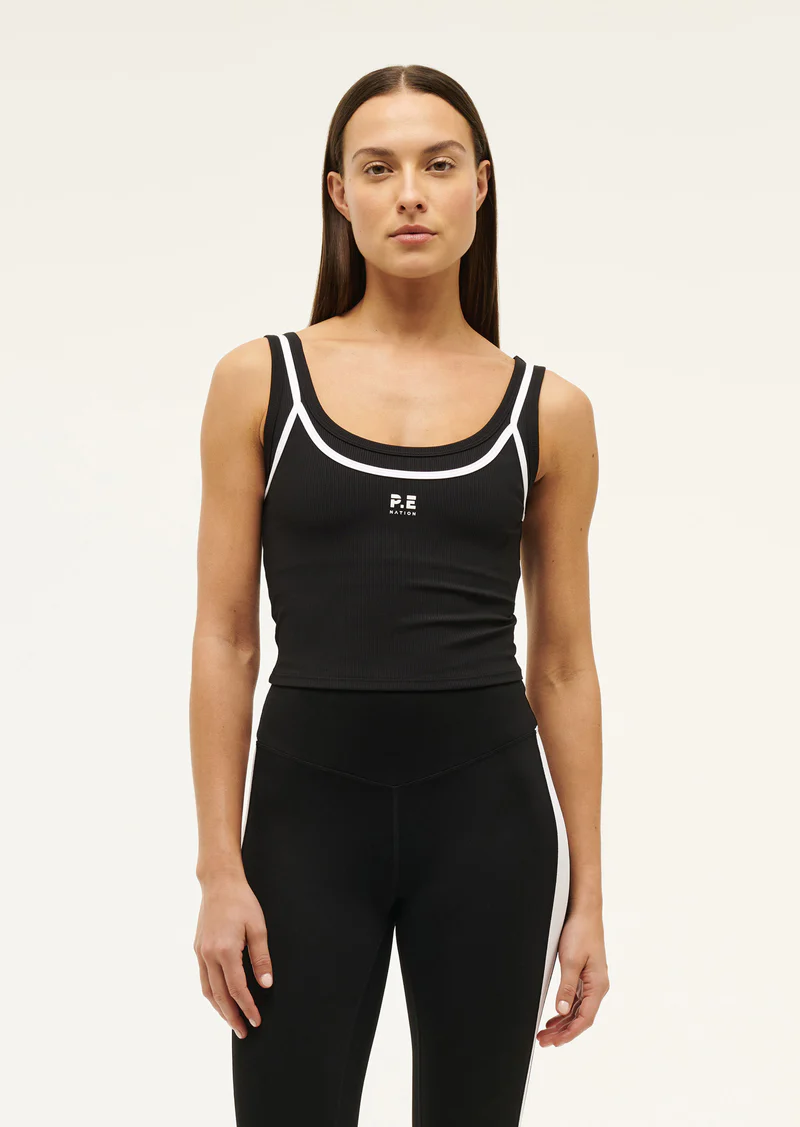 The Forward Tank in Black comes as part of our REC CLUB Collection. Made from a soft studio rib fabrication, this slim fit active cropped tank features a flattering scoop neckline, an inner layer with an elasticated hem and a contrast binding detail. Perfect for Yoga or Pilates, wear your tank with active leggings to your next workout.